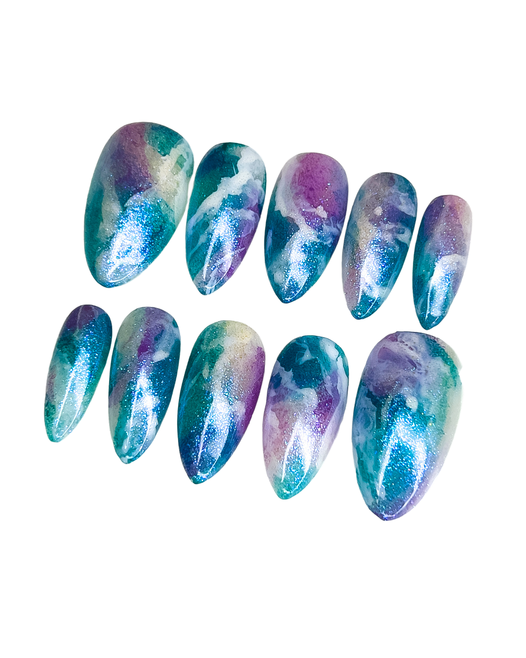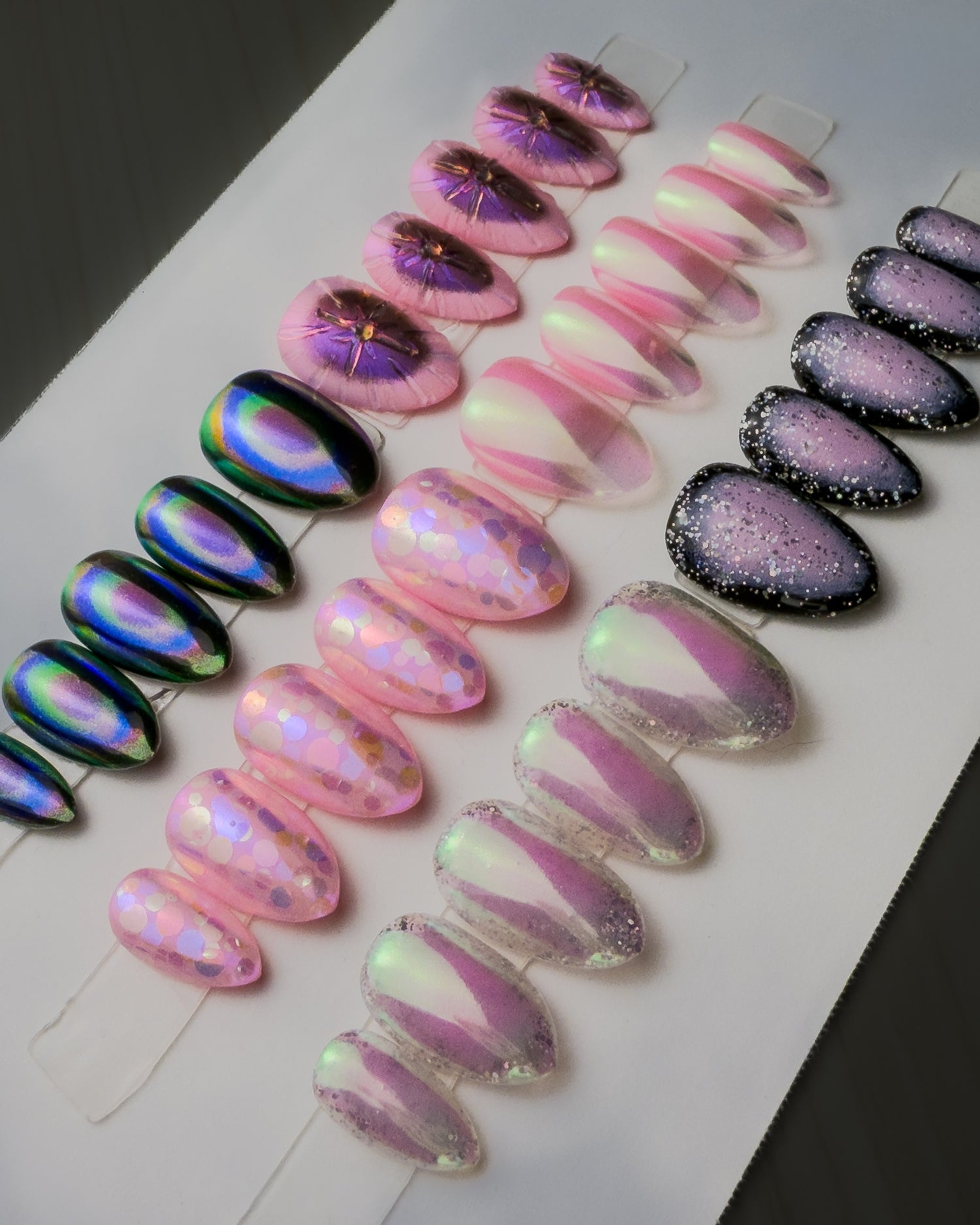 We offer a FREE sizing kit (upon request and will be sent out after order placed and before final nails are created). This ensures your custom set will be comfortable and look as natural as possible. No need to know sizes before you order. Sizing will only need to happen once and then all info will be stored for repeat clients.