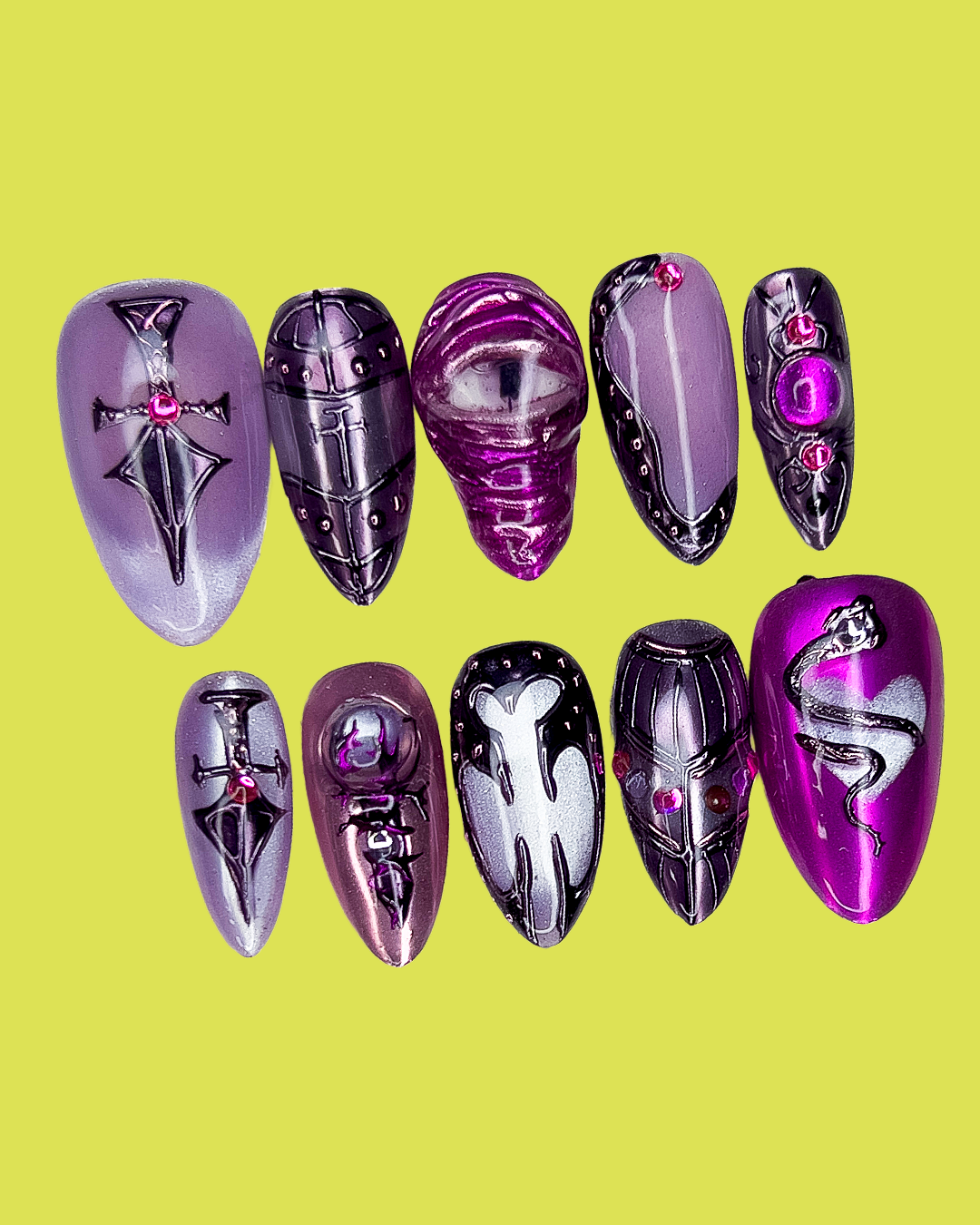 Took a chance on the mystery set with a cool inspo pic, and wow! The artist absolutely nailed the vibe. It was so much fun getting to unbox them, and the design is seriously fire. 10/10 would do this again!